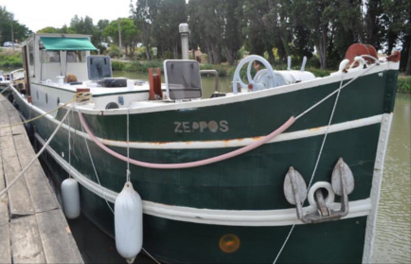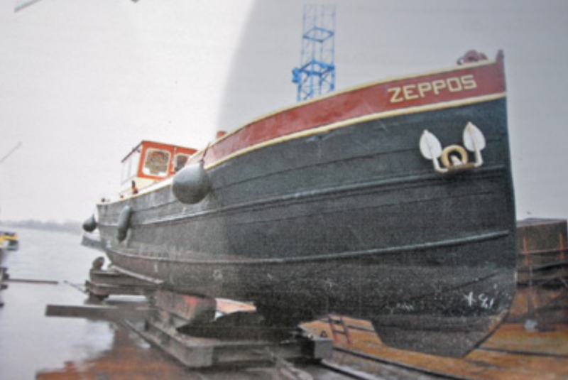 This is Zeppos dry docked around 2016, before the green and white trim...